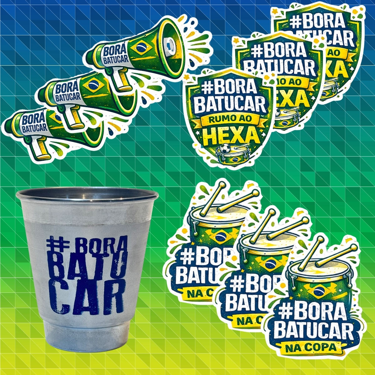 O Kit Copa Torcedor #BoraBatucar foi criado pra quem vive a percussão de verdade e quer entrar no clima da torcida com ainda mais identidade. Uma edição especial para personalizar seu instrumento de percussão, representar o movimento #BoraBatucar e mostrar que aqui a torcida também toca junto!
